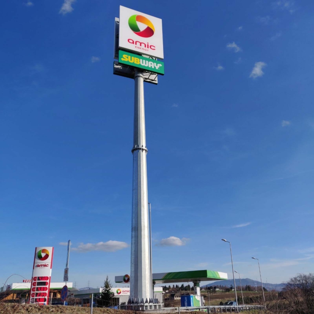 Graffico realizuje investice do brandingu čerpacích stanic od A do Z – od auditu, zkoušky s balónem, návrhů a vizualizací, technické dokumentace, výroby, přípravy základů až po samotnou montáž kompletního značení.